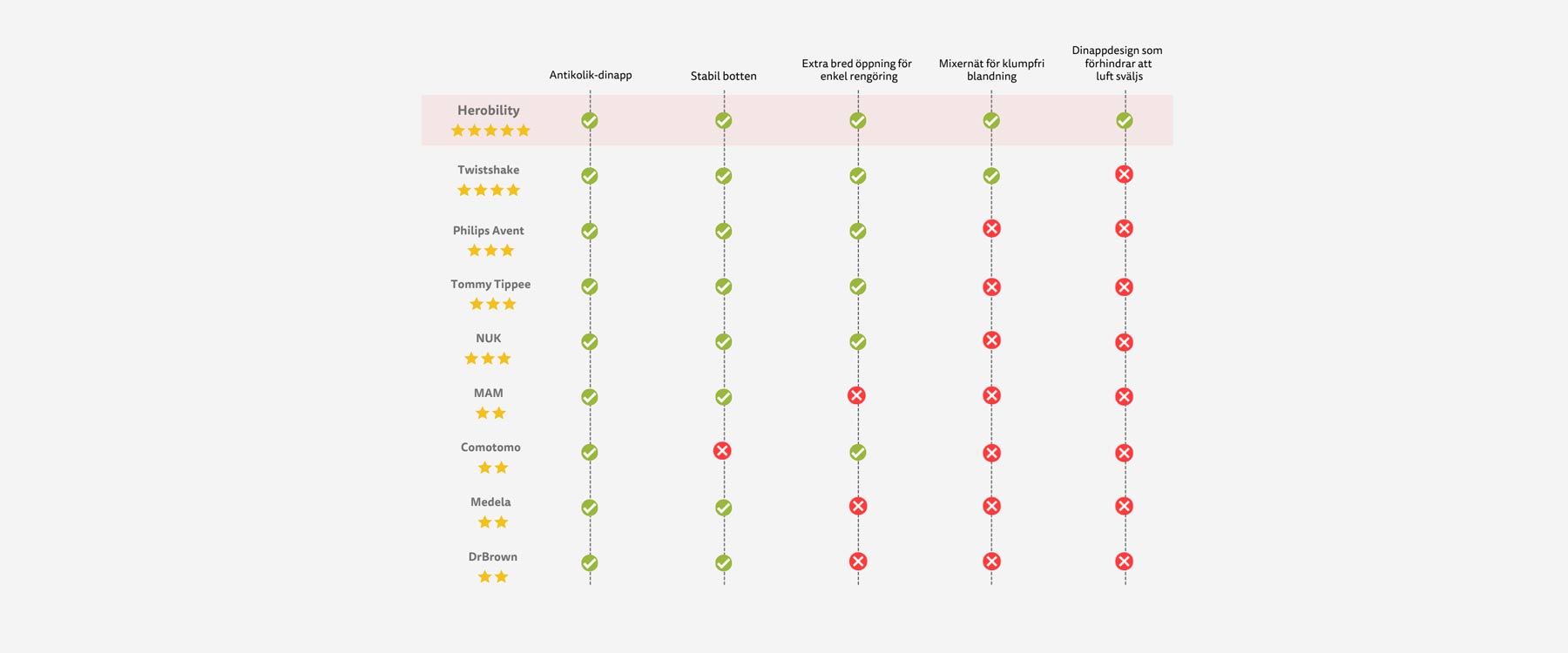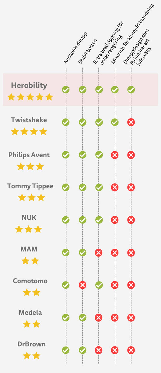 Herobility's prisbelönta nappflaska med dubbelt anti-kolik system ger en enkel och säker matning ofta på första försöket. Bred öppning, lätt att rengöra och säker för mikrovågsugn. Utvecklad i Sverige och utnämnd till Sveriges bästa nappflaska.